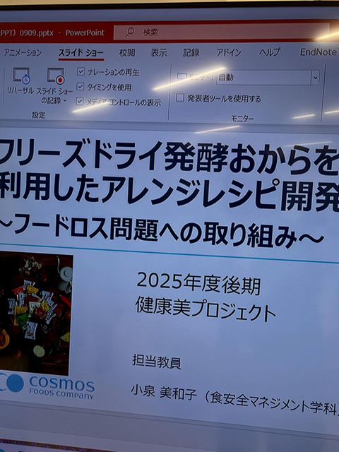 昭和女子大学食健康科学部食安全マネジメント学科において、フリーズドライ大手の株式会社コスモス食品様とのコラボレーションプロジェクトが、小泉美和子先生のご指導のもと3年目となる今年度もスタート。